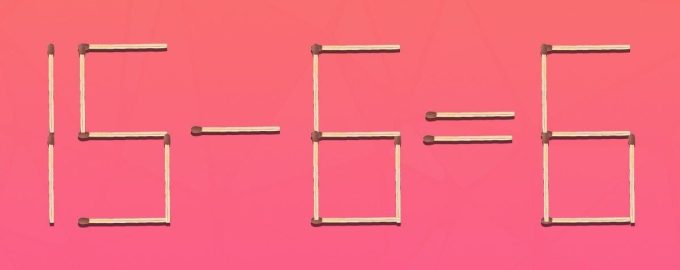 Nos, akkor találjuk ki együtt. Ahhoz, hogy matematikailag helyes egyenlőséget kapjunk, elég volt az egyenlőség közepén lévő 6-os számjegy bal alsó párját a számjegy jobb felső részébe áthelyezni. Így a 6 helyett a 9-es számjegyet kapjuk. Így kapjuk meg a helyes egyenlőséget: 15-9=6.