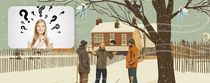A képen három portás látható, akik télen az udvaron egy fa alatt gyűltek össze és beszélgettek. Egyik beszélgetőpartner sem vette észre, hogy egyikük komoly veszélyben van.