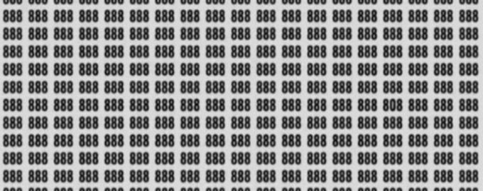 A rejtvények és az optikai illúziók, mint kiderült, nem csak szórakozásra szolgálnak, hanem remek módja annak is, hogy teszteljük az IQ-nkat és a megfigyelőképességünket. Magas szintű intelligenciával rendelkezel, ha ezt a trükkös optikai illúziót mindössze három másodperc alatt meg tudod oldani. A feladatod az, hogy megtaláld a 808-as számot, amely a 888-as sorozatban van elrejtve.