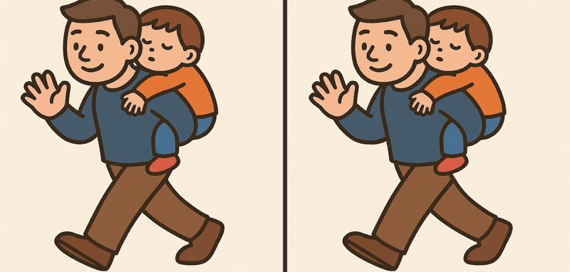 Készen állsz a következő kihívásra? Nézd meg alaposan a két képet, amelyeken egy férfi látható, aki egy kisbabát cipel a hátán. Lehet, hogy első pillantásra egyformának tűnnek, de van 3 apró különbség. Gondolod, hogy mindegyiket megtalálod 19 másodperc alatt? Próbáld ki, és teszteld a látásélességedet!