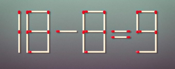 Az alábbiakban egy képet láthatsz, ahol a 18-8=9 egyenlőséget fektetjük le gyufák segítségével. Nyilvánvalóan matematikailag hibás, mert ezeknek a számoknak a különbségének 10-nek kellene lennie.