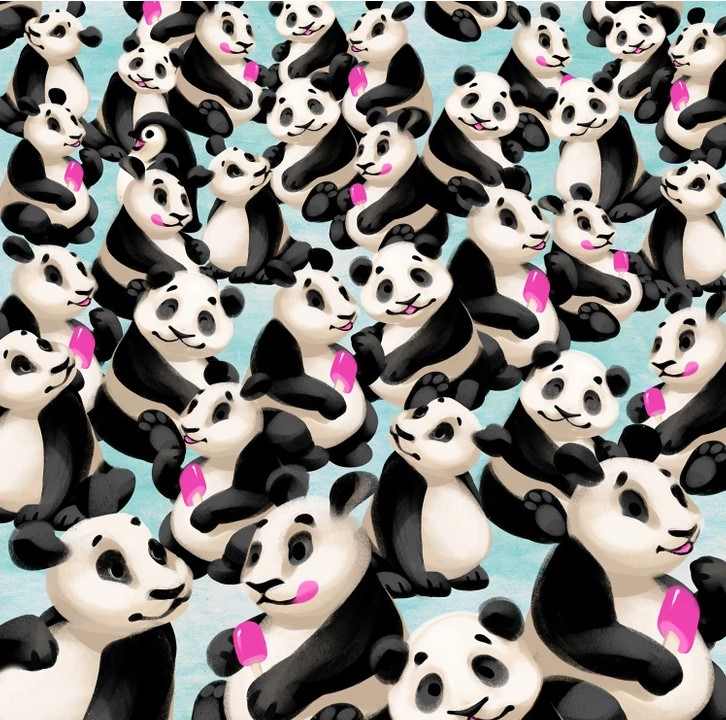 Nem találtad a pingvint? A nyom a kép bal sarkában található. A pandák között rejtőzik.