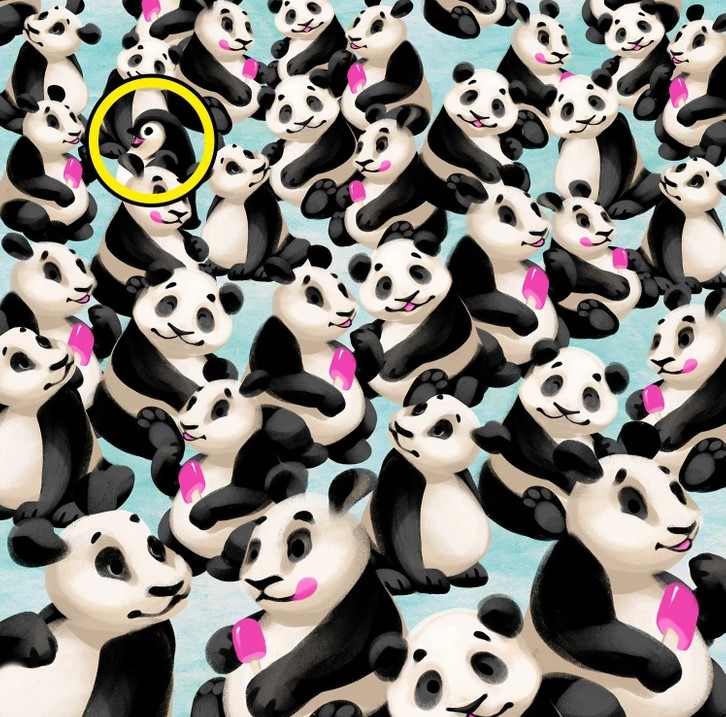 Ha nap mint nap unatkozol, és a munkahelyi rutin minden lelkesedést elveszít belőled, próbáld ki a rejtvények megoldását. A szórakoztató optikai illúziók mosolyt csalnak az arcodra és edzik a figyelmedet. Ezúttal a pandák között kell megtalálnunk a pingvint.