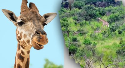 Egy csapat állatot látunk, akik zöld fák és bokrok között bolyonganak. Van a képen néhány zsiráf és zebra. De pontos számukat megszámolni nem könnyű feladat. Hiszen néhány állat jól látható, ugyanakkor néhányuk rejtve lehet a szemünk elől.